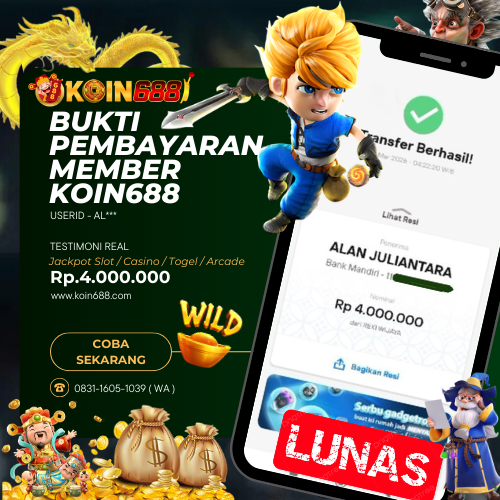 KOIN688 adalah Situs Togel Online & Slot Online di Indonesia. Dengan menyediakan berbagai macam permainan yang seru dan menarik di KOIN688, maka anda tidak perlu ragu lagi untuk bergabung dan bermain bersama kami situs judi online terpercaya yang akan membayar berapapun kemenangan anda. Hanya dengan 1 User ID anda sudah dapat memainkan semua permainan mulai dari togel, Live casino sampai Slot online yang pastinya seru dan menyenangkan.