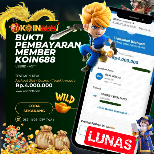 KOIN688 adalah Situs Togel Online & Slot Online di Indonesia. Dengan menyediakan berbagai macam permainan yang seru dan menarik di KOIN688, maka anda tidak perlu ragu lagi untuk bergabung dan bermain bersama kami situs judi online terpercaya yang akan membayar berapapun kemenangan anda. Hanya dengan 1 User ID anda sudah dapat memainkan semua permainan mulai dari togel, Live casino sampai Slot online yang pastinya seru dan menyenangkan.