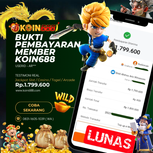 KOIN688 adalah Situs Togel Online & Slot Online di Indonesia. Dengan menyediakan berbagai macam permainan yang seru dan menarik di KOIN688, maka anda tidak perlu ragu lagi untuk bergabung dan bermain bersama kami situs judi online terpercaya yang akan membayar berapapun kemenangan anda. Hanya dengan 1 User ID anda sudah dapat memainkan semua permainan mulai dari togel, Live casino sampai Slot online yang pastinya seru dan menyenangkan.