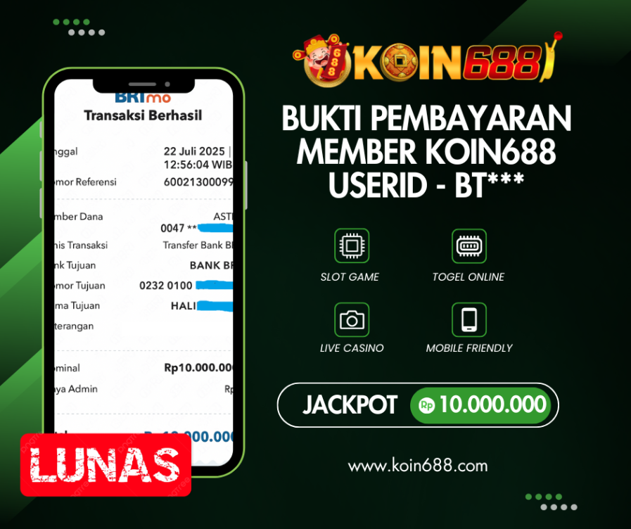 Masih ragu dengan koin688 bos ? Di mana bandar togel online sekarang yang terpercaya seperti koin688? Bandar yang mengirimkan kemenangan member tanpa bertele – tele. Jadi…. tidak perlu khwatir pada situs koin688 karena kemenangan anda berapapun akan dibayarakan hingga lunas kepada pemenang.