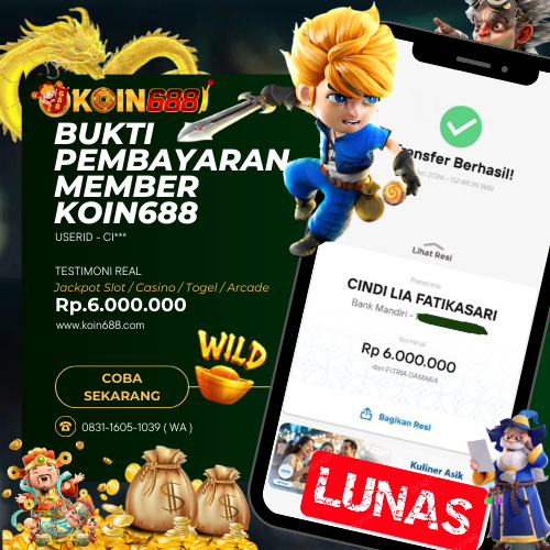 KOIN688 adalah Situs Togel Online & Slot Online di Indonesia. Dengan menyediakan berbagai macam permainan yang seru dan menarik di KOIN688, maka anda tidak perlu ragu lagi untuk bergabung dan bermain bersama kami situs judi online terpercaya yang akan membayar berapapun kemenangan anda. Hanya dengan 1 User ID anda sudah dapat memainkan semua permainan mulai dari togel, Live casino sampai Slot online yang pastinya seru dan menyenangkan.