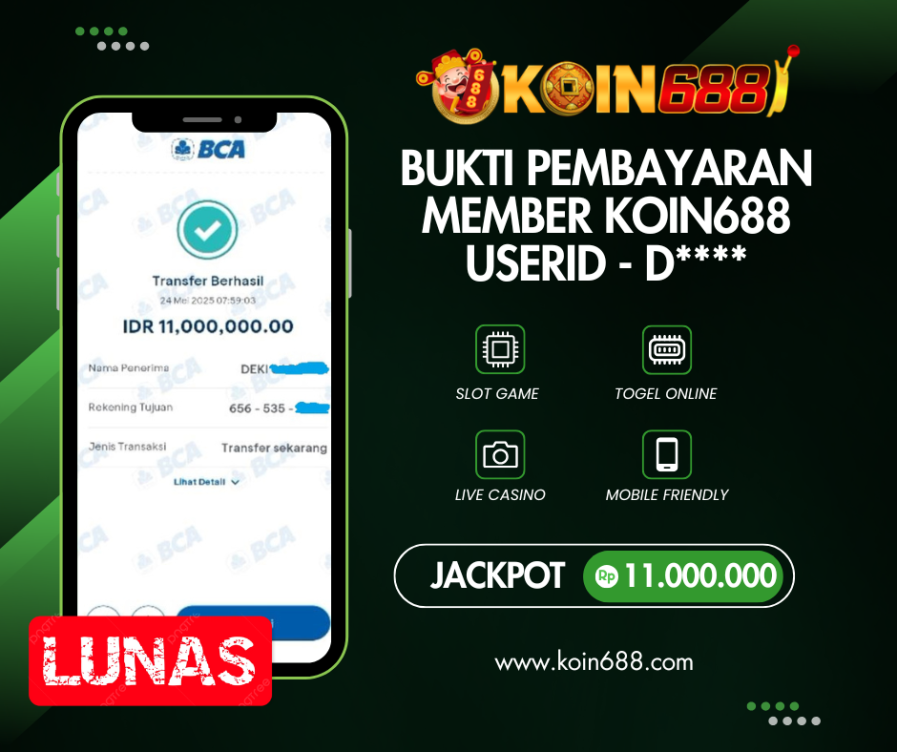 KOIN688 BUKTI PEMBAYARAN MEMBER USERID – D**** Rp.11.000.000,- LUNAS
