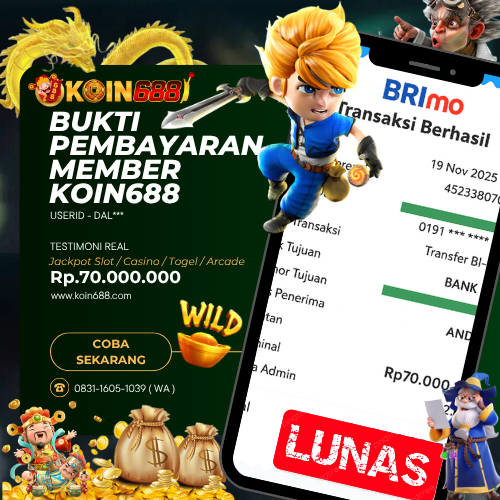 Selamat kepada User id : DAL*** Telah berhasil mendapatkan kemenangan besar pada permainan SLOT MAHJONG WAYSkemenangan Sebesar Rp.70.000.000,Setelah mengisi formulir withdraw dengan kurung waktu hanya 5 – 10 menit pihak koin688 sudah melakukan transfer kepada pemilik Userid dan dana sudah dapat di cairkan oleh pemenang. Bukti pembayaran yang kami berikan merupakan bukti pembayaran yang SAH / VALID yang langung di dapatkan melaui tanda transfer transaksi dari Bank yang di tuju.