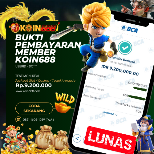 Selamat kepada User id : DO*** Telah berhasil mendapatkan kemenangan besar pada permainan SLOT SUGAR RUSH 1000 kemenangan Sebesar Rp.9.200.000,Setelah mengisi formulir withdraw dengan kurung waktu hanya 5 – 10 menit pihak koin688 sudah melakukan transfer kepada pemilik Userid dan dana sudah dapat di cairkan oleh pemenang. Bukti pembayaran yang kami berikan merupakan bukti pembayaran yang SAH / VALID yang langung di dapatkan melaui tanda transfer transaksi dari Bank yang di tuju.