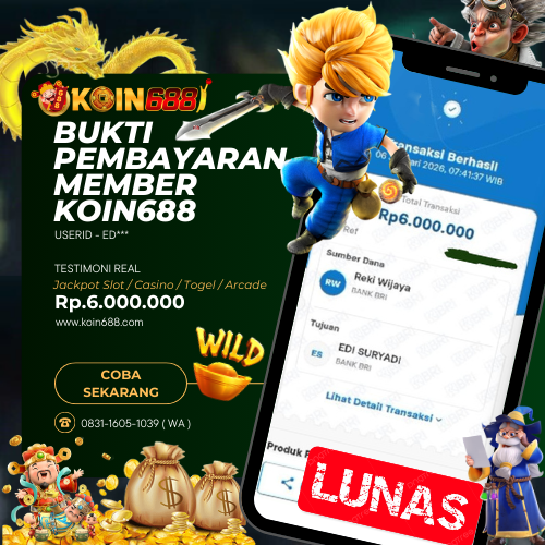 KOIN688 adalah Situs Togel Online & Slot Online di Indonesia. Dengan menyediakan berbagai macam permainan yang seru dan menarik di KOIN688, maka anda tidak perlu ragu lagi untuk bergabung dan bermain bersama kami situs judi online terpercaya yang akan membayar berapapun kemenangan anda. Hanya dengan 1 User ID anda sudah dapat memainkan semua permainan mulai dari togel, Live casino sampai Slot online yang pastinya seru dan menyenangkan.