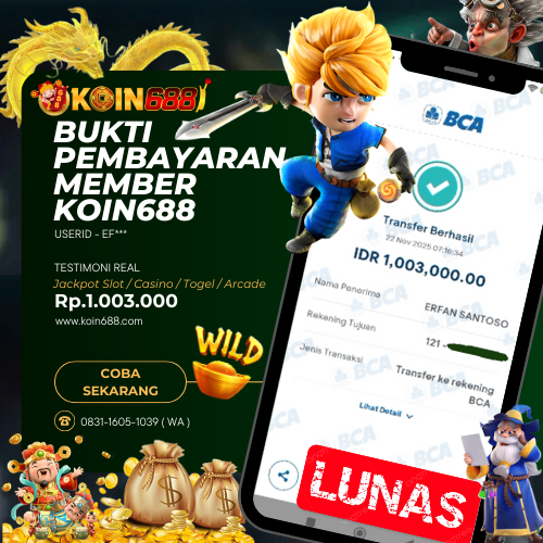 KOIN688 adalah Situs Togel Online & Slot Online di Indonesia. Dengan menyediakan berbagai macam permainan yang seru dan menarik di KOIN688, maka anda tidak perlu ragu lagi untuk bergabung dan bermain bersama kami situs judi online terpercaya yang akan membayar berapapun kemenangan anda. Hanya dengan 1 User ID anda sudah dapat memainkan semua permainan mulai dari togel, Live casino sampai Slot online yang pastinya seru dan menyenangkan.