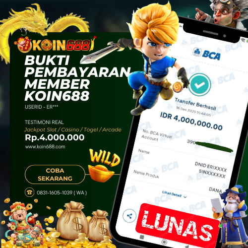 KOIN688 adalah Situs Togel Online & Slot Online di Indonesia. Dengan menyediakan berbagai macam permainan yang seru dan menarik di KOIN688, maka anda tidak perlu ragu lagi untuk bergabung dan bermain bersama kami situs judi online terpercaya yang akan membayar berapapun kemenangan anda. Hanya dengan 1 User ID anda sudah dapat memainkan semua permainan mulai dari togel, Live casino sampai Slot online yang pastinya seru dan menyenangkan.