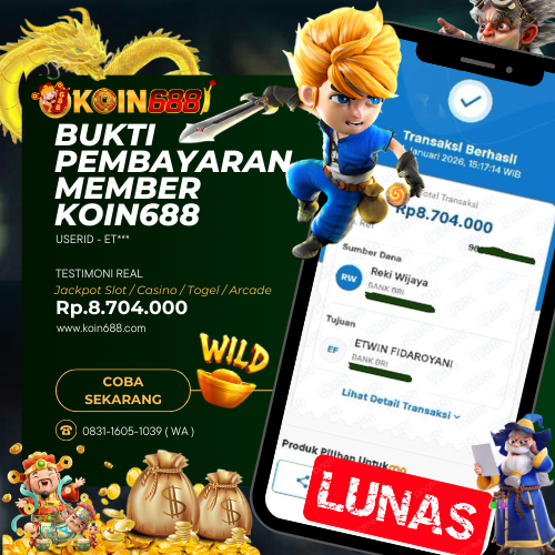 KOIN688 adalah Situs Togel Online & Slot Online di Indonesia. Dengan menyediakan berbagai macam permainan yang seru dan menarik di KOIN688, maka anda tidak perlu ragu lagi untuk bergabung dan bermain bersama kami situs judi online terpercaya yang akan membayar berapapun kemenangan anda. Hanya dengan 1 User ID anda sudah dapat memainkan semua permainan mulai dari togel, Live casino sampai Slot online yang pastinya seru dan menyenangkan.