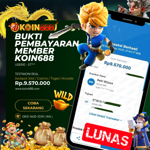 KOIN688 adalah Situs Togel Online & Slot Online di Indonesia. Dengan menyediakan berbagai macam permainan yang seru dan menarik di KOIN688, maka anda tidak perlu ragu lagi untuk bergabung dan bermain bersama kami situs judi online terpercaya yang akan membayar berapapun kemenangan anda. Hanya dengan 1 User ID anda sudah dapat memainkan semua permainan mulai dari togel, Live casino sampai Slot online yang pastinya seru dan menyenangkan.
