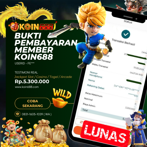 KOIN688 adalah Situs Togel Online & Slot Online di Indonesia. Dengan menyediakan berbagai macam permainan yang seru dan menarik di KOIN688, maka anda tidak perlu ragu lagi untuk bergabung dan bermain bersama kami situs judi online terpercaya yang akan membayar berapapun kemenangan anda. Hanya dengan 1 User ID anda sudah dapat memainkan semua permainan mulai dari togel, Live casino sampai Slot online yang pastinya seru dan menyenangkan.