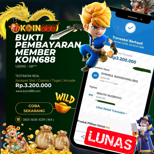 KOIN688 adalah Situs Togel Online & Slot Online di Indonesia. Dengan menyediakan berbagai macam permainan yang seru dan menarik di KOIN688, maka anda tidak perlu ragu lagi untuk bergabung dan bermain bersama kami situs judi online terpercaya yang akan membayar berapapun kemenangan anda. Hanya dengan 1 User ID anda sudah dapat memainkan semua permainan mulai dari togel, Live casino sampai Slot online yang pastinya seru dan menyenangkan.