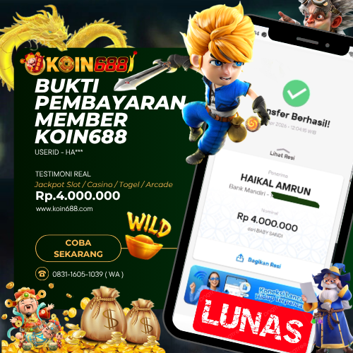 KOIN688 adalah Situs Togel Online & Slot Online di Indonesia. Dengan menyediakan berbagai macam permainan yang seru dan menarik di KOIN688, maka anda tidak perlu ragu lagi untuk bergabung dan bermain bersama kami situs judi online terpercaya yang akan membayar berapapun kemenangan anda. Hanya dengan 1 User ID anda sudah dapat memainkan semua permainan mulai dari togel, Live casino sampai Slot online yang pastinya seru dan menyenangkan.