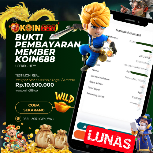 KOIN688 adalah Situs Togel Online & Slot Online di Indonesia. Dengan menyediakan berbagai macam permainan yang seru dan menarik di KOIN688, maka anda tidak perlu ragu lagi untuk bergabung dan bermain bersama kami situs judi online terpercaya yang akan membayar berapapun kemenangan anda. Hanya dengan 1 User ID anda sudah dapat memainkan semua permainan mulai dari togel, Live casino sampai Slot online yang pastinya seru dan menyenangkan.