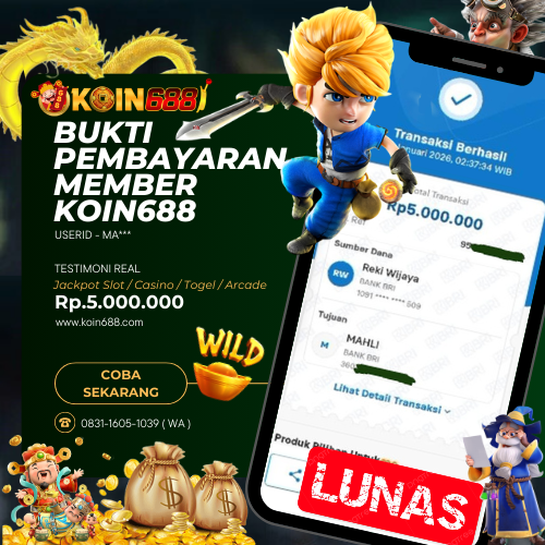 KOIN688 adalah Situs Togel Online & Slot Online di Indonesia. Dengan menyediakan berbagai macam permainan yang seru dan menarik di KOIN688, maka anda tidak perlu ragu lagi untuk bergabung dan bermain bersama kami situs judi online terpercaya yang akan membayar berapapun kemenangan anda. Hanya dengan 1 User ID anda sudah dapat memainkan semua permainan mulai dari togel, Live casino sampai Slot online yang pastinya seru dan menyenangkan.