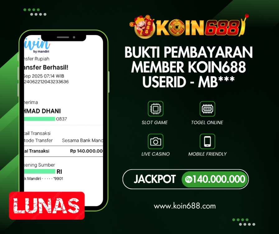 Masih ragu dengan koin688 bos ? Di mana bandar togel online sekarang yang terpercaya seperti koin688? Bandar yang mengirimkan kemenangan member tanpa bertele – tele. Jadi…. tidak perlu khwatir pada situs koin688 karena kemenangan anda berapapun akan dibayarakan hingga lunas kepada pemenang.