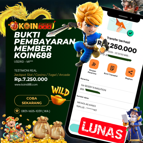 Selamat kepada User id : MI*** Telah berhasil mendapatkan kemenangan besar pada permainan SLOT GATES OF GATOT KACA SUPER SCATTER kemenangan Sebesar Rp.7.250.000,Setelah mengisi formulir withdraw dengan kurung waktu hanya 5 – 10 menit pihak koin688 sudah melakukan transfer kepada pemilik Userid dan dana sudah dapat di cairkan oleh pemenang. Bukti pembayaran yang kami berikan merupakan bukti pembayaran yang SAH / VALID yang langsung di dapatkan melalui tanda transfer transaksi dari Bank yang di tuju.