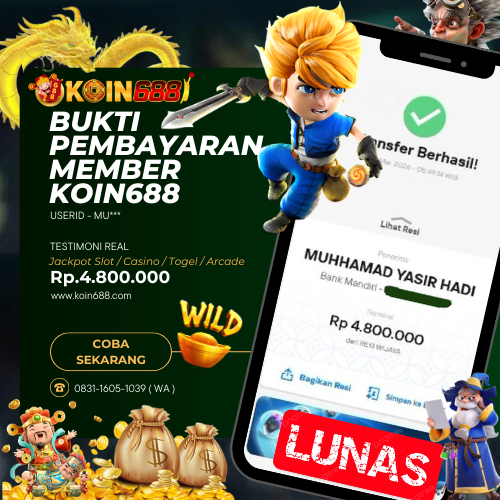 KOIN688 adalah Situs Togel Online & Slot Online di Indonesia. Dengan menyediakan berbagai macam permainan yang seru dan menarik di KOIN688, maka anda tidak perlu ragu lagi untuk bergabung dan bermain bersama kami situs judi online terpercaya yang akan membayar berapapun kemenangan anda. Hanya dengan 1 User ID anda sudah dapat memainkan semua permainan mulai dari togel, Live casino sampai Slot online yang pastinya seru dan menyenangkan.