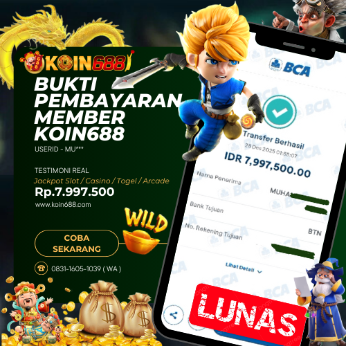 Selamat kepada User id : MU*** Telah berhasil mendapatkan kemenangan besar pada permainan SLOT SWEET BONANZA 1000 kemenangan Sebesar Rp.7.997.500,Setelah mengisi formulir withdraw dengan kurung waktu hanya 5 – 10 menit pihak koin688 sudah melakukan transfer kepada pemilik Userid dan dana sudah dapat di cairkan oleh pemenang. Bukti pembayaran yang kami berikan merupakan bukti pembayaran yang SAH / VALID yang langung di dapatkan melaui tanda transfer transaksi dari Bank yang di tuju.