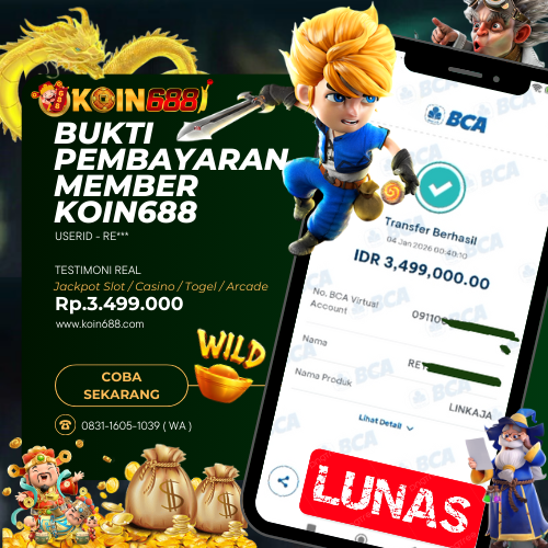 KOIN688 adalah Situs Togel Online & Slot Online di Indonesia. Dengan menyediakan berbagai macam permainan yang seru dan menarik di KOIN688, maka anda tidak perlu ragu lagi untuk bergabung dan bermain bersama kami situs judi online terpercaya yang akan membayar berapapun kemenangan anda. Hanya dengan 1 User ID anda sudah dapat memainkan semua permainan mulai dari togel, Live casino sampai Slot online yang pastinya seru dan menyenangkan.