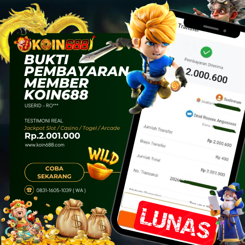 KOIN688 adalah Situs Togel Online & Slot Online di Indonesia. Dengan menyediakan berbagai macam permainan yang seru dan menarik di KOIN688, maka anda tidak perlu ragu lagi untuk bergabung dan bermain bersama kami situs judi online terpercaya yang akan membayar berapapun kemenangan anda. Hanya dengan 1 User ID anda sudah dapat memainkan semua permainan mulai dari togel, Live casino sampai Slot online yang pastinya seru dan menyenangkan.