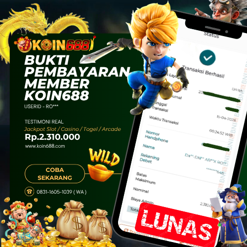 KOIN688 BUKTI PEMBAYARAN MEMBER USERID – RO*** Rp.2.310.000.,- LUNAS