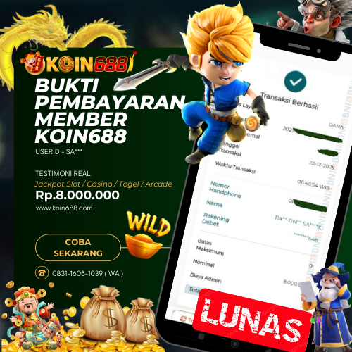 Selamat kepada User id : SA*** Telah berhasil mendapatkan kemenangan besar pada permainan SLOT GATES OF GATOT KACA SUPER SCATTER kemenangan Sebesar Rp.8.000.000,Setelah mengisi formulir withdraw dengan kurung waktu hanya 5 – 10 menit pihak koin688 sudah melakukan transfer kepada pemilik Userid dan dana sudah dapat di cairkan oleh pemenang. Bukti pembayaran yang kami berikan merupakan bukti pembayaran yang SAH / VALID yang langung di dapatkan melaui tanda transfer transaksi dari Bank yang di tuju.