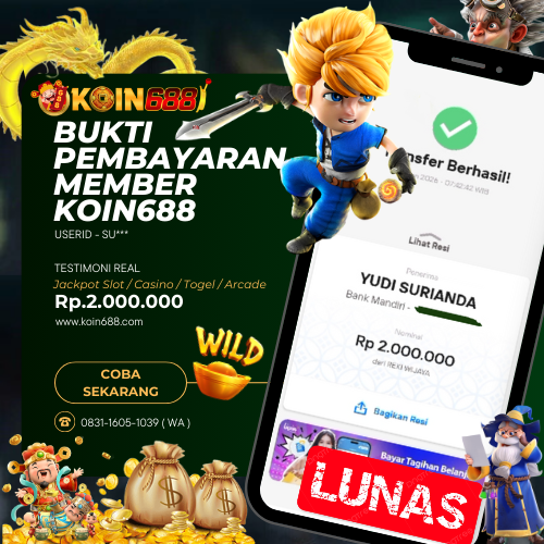 KOIN688 adalah Situs Togel Online & Slot Online di Indonesia. Dengan menyediakan berbagai macam permainan yang seru dan menarik di KOIN688, maka anda tidak perlu ragu lagi untuk bergabung dan bermain bersama kami situs judi online terpercaya yang akan membayar berapapun kemenangan anda. Hanya dengan 1 User ID anda sudah dapat memainkan semua permainan mulai dari togel, Live casino sampai Slot online yang pastinya seru dan menyenangkan.