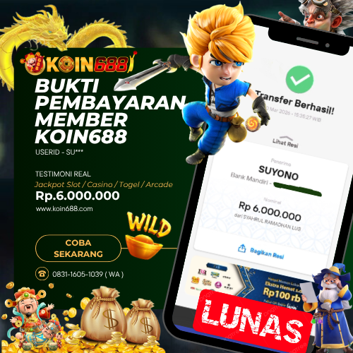 KOIN688 adalah Situs Togel Online & Slot Online di Indonesia. Dengan menyediakan berbagai macam permainan yang seru dan menarik di KOIN688, maka anda tidak perlu ragu lagi untuk bergabung dan bermain bersama kami situs judi online terpercaya yang akan membayar berapapun kemenangan anda. Hanya dengan 1 User ID anda sudah dapat memainkan semua permainan mulai dari togel, Live casino sampai Slot online yang pastinya seru dan menyenangkan.