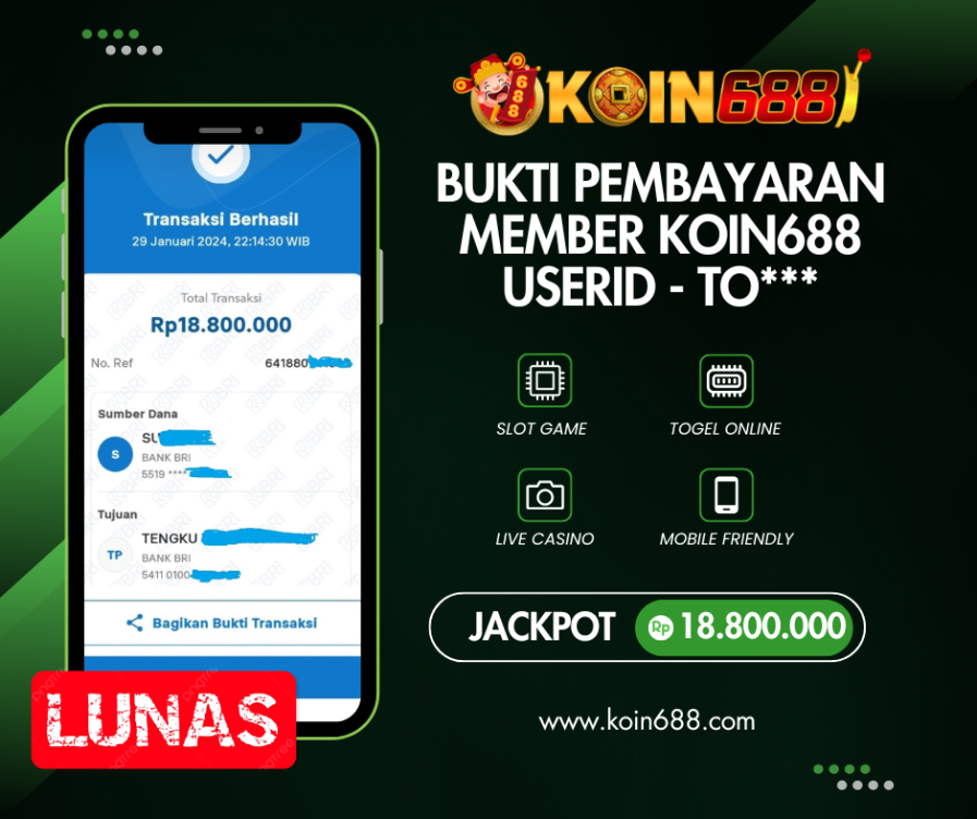 Masih ragu dengan koin688 bos ? Di mana bandar togel online sekarang yang terpercaya seperti koin688? Bandar yang mengirimkan kemenangan member tanpa bertele – tele. Jadi…. tidak perlu khwatir pada situs koin688 karena kemenangan anda berapapun akan dibayarakan hingga lunas kepada pemenang.