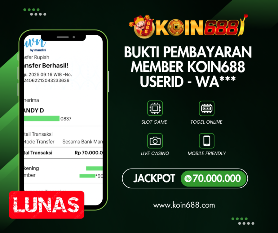 KOIN688 BUKTI PEMBAYARAN MEMBER USERID – WA*** Rp.70.000.000.,- LUNAS