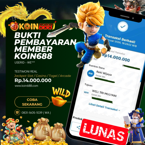 Selamat kepada User id : WE*** Telah berhasil mendapatkan kemenangan besar pada permainan SLOT MAHJONG WAYS kemenangan Sebesar Rp.14.000.000,Setelah mengisi formulir withdraw dengan kurung waktu hanya 5 – 10 menit pihak koin688 sudah melakukan transfer kepada pemilik Userid dan dana sudah dapat di cairkan oleh pemenang. Bukti pembayaran yang kami berikan merupakan bukti pembayaran yang SAH / VALID yang langung di dapatkan melaui tanda transfer transaksi dari Bank yang di tuju.