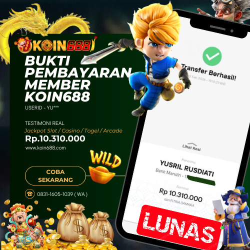 KOIN688 adalah Situs Togel Online & Slot Online di Indonesia. Dengan menyediakan berbagai macam permainan yang seru dan menarik di KOIN688, maka anda tidak perlu ragu lagi untuk bergabung dan bermain bersama kami situs judi online terpercaya yang akan membayar berapapun kemenangan anda. Hanya dengan 1 User ID anda sudah dapat memainkan semua permainan mulai dari togel, Live casino sampai Slot online yang pastinya seru dan menyenangkan.