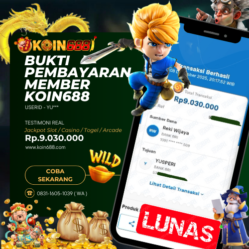KOIN688 adalah Situs Togel Online & Slot Online di Indonesia. Dengan menyediakan berbagai macam permainan yang seru dan menarik di KOIN688, maka anda tidak perlu ragu lagi untuk bergabung dan bermain bersama kami situs judi online terpercaya yang akan membayar berapapun kemenangan anda. Hanya dengan 1 User ID anda sudah dapat memainkan semua permainan mulai dari togel, Live casino sampai Slot online yang pastinya seru dan menyenangkan.
